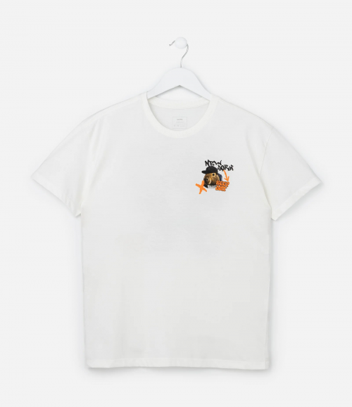 Camiseta infantil de modelo oversized, com gola redonda, manga curta e estampa de capivara skatista, frente e costas.