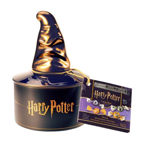 A Lata Chapéu Seletor Harry Potter é a escolha certa para os fãs da saga e amantes de chocolate. Com design exclusivo em formato do icônico Chapéu Seletor de Hogwarts, essa edição colecionável revela as casas da escola em forma de trufas sortidas e deliciosas.