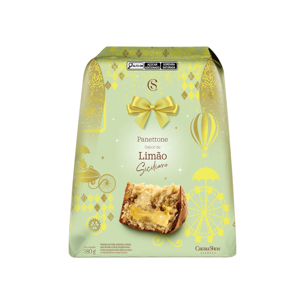 O Panetone de Limão Siciliano da Cacau Show oferece uma combinação perfeita entre o sabor clássico do panetone e o toque cítrico e sofisticado do limão. Com limão cristalizado e recheio sabor limão e trufa de chocolate branco, ele proporciona uma experiência refrescante e deliciosa para as festas de fim de ano.