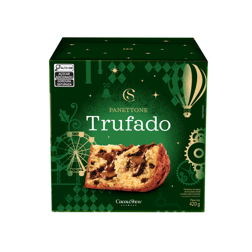 A deliciosa combinação do panetone com gotas de chocolate ao leite e recheio sabor chocolate, com uma massa leve e que desmancha na boca, além de contar com um recheio trufado. Se tornando uma das principais opções para uma linda noite de celebração, ou apenas um simples momento com os amigos e família.