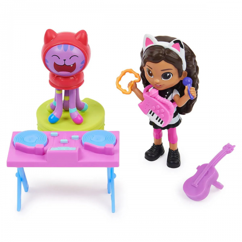 Crie músicas com Gabby e o seu Karaokê! Este cenário inclui uma figura da Gabby, uma figura de Daniel James DJ Catnip, um teclado, além de uma caixinha com um acessório surpresa dentro! O que você encontrará dentro? Após a revelação, use sua imaginação para criar suas próprias aventuras! Coloque o teclado ou o acessório surpressa em Gabby e agite a festa!