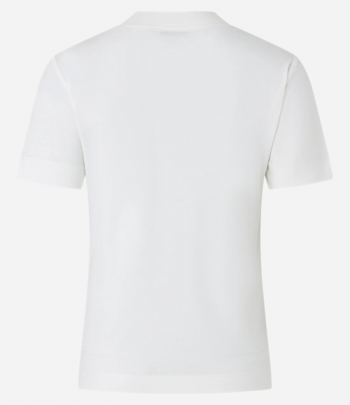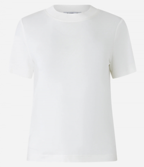 Blusa feminina básica e ajustada, confeccionada em malha ribana de algodão, com gola redonda, mangas curtas e textura canelada.