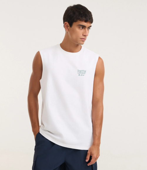 Regata masculina confeccionada em algodão certificado BCI e boas práticas ambientais, com modelagem comfort que garante liberdade de movimento. Possui gola redonda, sem mangas e estampa photoprint localizada, oferecendo leveza e toque macio para o dia a dia.